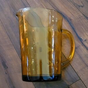 Excellent pre owned condition. Vintage - MCM Hazel Atlas Amber Glass Waterfall Optic Ribbed Pitcher. Handle. Ice lip. 8.25" tall 64 ounces. No chips stratches or cracks. Made in the USA
