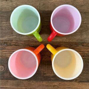 Brighten up your dining experience with this vibrant antique mug set. Featuring bold colors of yellow, red, orange, and green, these mugs are perfect for adding a splash of color to your table. Ideal for coffee, tea, or any hot beverage.
