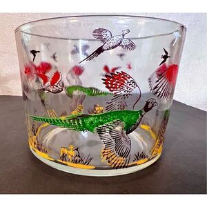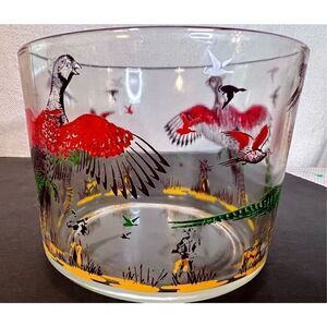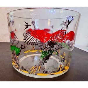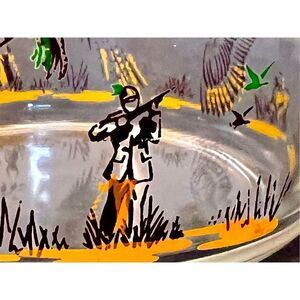 Vintage MCM Hazel Atlas Pheasant Hunters Dogs Ice Snack Bowl Glassware Barware