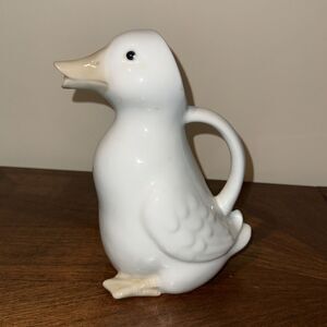 Vintage MCM Henriksen Imports White Ceramic Duck Pitcher 8.5" Made in Japan