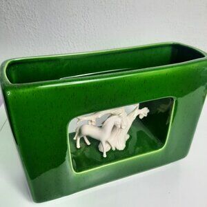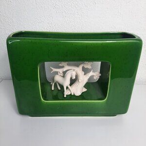 Vintage MCM Howard Pierce California USA Pottery Vase Bisque Horse Center #P-500