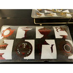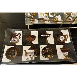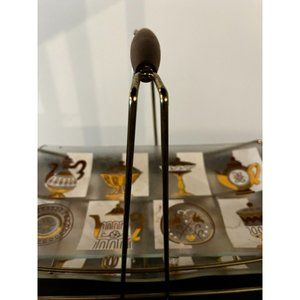 Vintage MCM Inland Glass gold graphic glass tray set coffee & tea pots w base