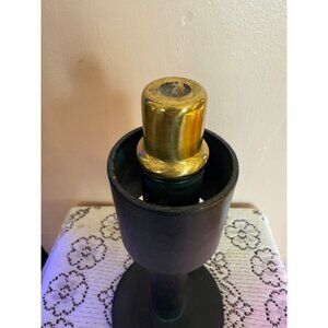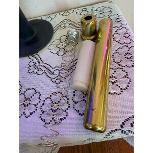 Add a touch of mid-century modern charm to your space with this vintage iron candle holder. Featuring a spring-loaded design and a glass shade, it's perfect for creating a cozy ambiance. This stands about 17" tall with the shade. The candle spring works and has an unused candles loaded in it. The rim edges of the glass have some tiny nicks from setting it on the holder. It is in good displayable vintage condition.