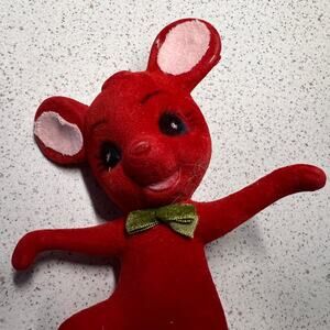 Vintage MCM Japan 7" Red Flocked Dancing Mouse Christmas Ornament Decor