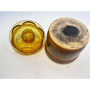 Vintage MCM Japanese Stoneware Small Yellow Crock with Brown Lid Sugar Bowl Butt