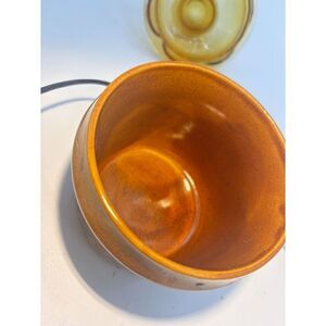 Vintage MCM Japanese Stoneware Small Yellow Crock with Brown Lid Sugar Bowl Butt in excellent condition