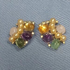JOMAZ Clip On RHINESTONE & FAUX PEARL  EARRINGS