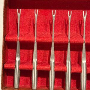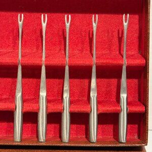 Vintage MCM Kalmar Designs Cocktail Fork Set of 8 Brushed Stainless Steel Italy
