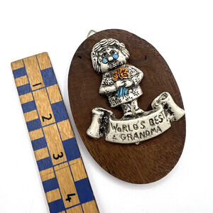 This vintage kitschy "World's Best Grandma" wall art plaque is in nice preowned condition with very little signs of wear. The plaque measures approximately 4x2.75 inches. There are no major flaws or signs of wear. Please view all photos for item conditon and ask any questions. Thank you!