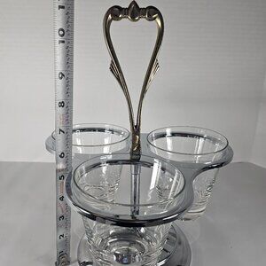 Vintage MCM, Kromex, Triple Condiment Caddy, Lazy Susan Chrome Glass Brass