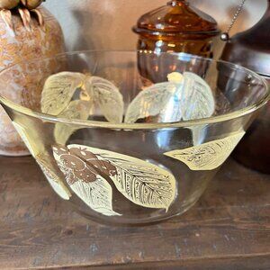 Vintage Mcm Serving Salad Bowl With Gold And Tan Berry Pattern