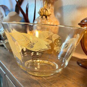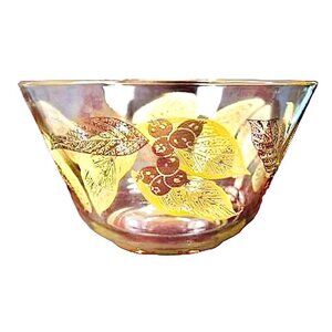 Vintage MCM Large Salad Bowl Gold Berries