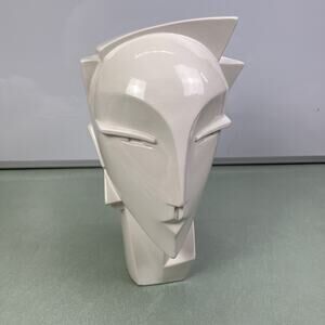 Vintage MCM Lindsey B Balkweill Style Art Deco White Ceramic Head Bust Sculpture