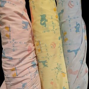 Vintage MCM Lot Of 3 Bolts Of Baby Sheer Nursery Baby Animal Print Material Rare