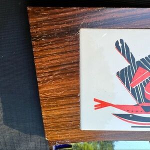 Vintage MCM Made In Japan Tile Cheese Board & Cheese Knife