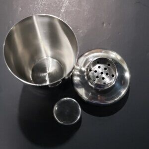 Made of stainless steel with a sleek silver color, this shaker stands approximately 6.25" tall and 3" wide at its widest point. Its original design makes it a unique and high-quality piece for all occasions. Perfect for shaking up your favorite cocktails in style, this cocktail shaker is both practical and elegant for any home bar or entertaining setup.