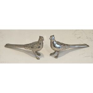 Vintage MCM Metal Pheasant Salt & Pepper Shakers Ringneck Roosters