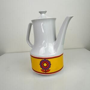 Vintage MCM White Floral with Lid Space Age Design Porcelain Coffee & Teapot.