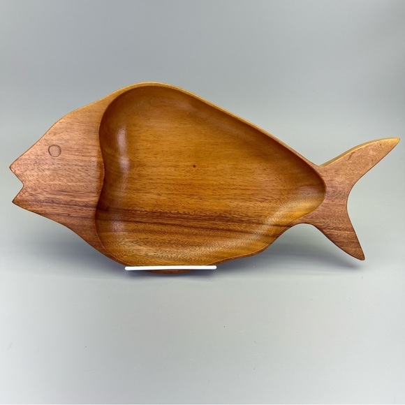 Vintage MCM Monkey Pod Wood Fish Shaped Serving Bowl Platter