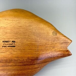 Vintage MCM Filkraft Philippines Fish Shaped Monkey Pod Wood