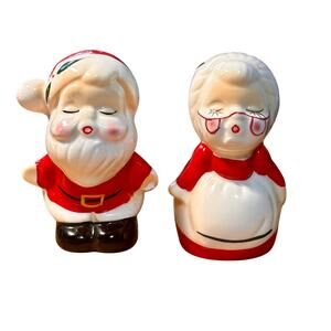 Vintage MCM Mr. and Mrs. Santa Clause Kissing Salt n' Pepper Shakers