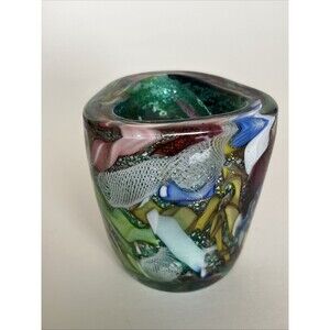 Vintage MCM Murano Glass AVEM Tutti Frutti Toothpick Holder Mini Vase 2.5"