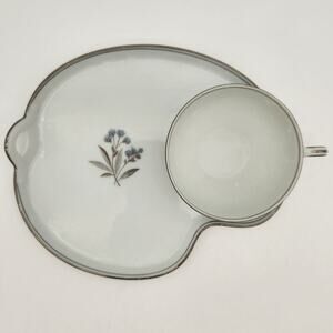 Vintage MCM Noritake Bessie Pattern Snack Set Delicate Blue Flowers Silver Trim