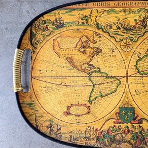 Vintage MCM Old World Map Globe Serving Tray Made in Japan