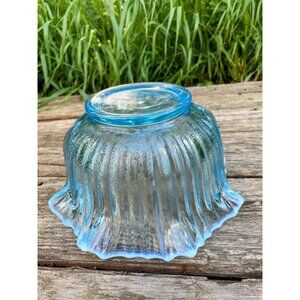 Vintage MCM Opalescent Blue Ribbed Ruffled Art Glass Bowl