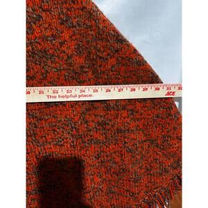 This Vintage MCM Orange brown knit Poncho Shawl Wrap is a handmade piece from the 1970s, featuring a unique multicolor pattern in shades of rust, brown The poncho style with fringe detail adds a retro touch, perfect for everyday wear in a boho-inspired look. Made from a wool blend material, this one-size piece offers a warm and comfortable option for stylish women looking to add a Mod/GoGo vibe to their wardrobe.