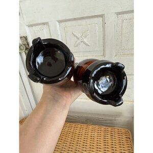 This pair of vintage MCM vases features a stunning lacquer wood design with inlaid shell Geisha girls. These footed vases add a touch of elegance and cultural charm to any space. These measure 9". They are in great vintage condition with no chips or damage.