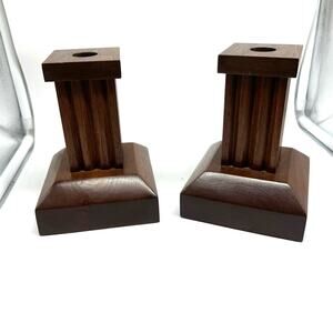 Beautiful wood candle stick holders! Preowned vintage condition. Approximate measurements pictured.