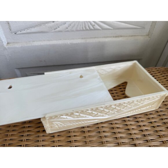 This vintage MCM Pearl Lucite plastic tissue box is a stylish storage solution for your home. Its mid-century modern design adds a touch of elegance to any room. This measures 10x5". It can hang on the wall or be on a table top. It has no chips or cracks.