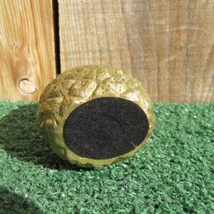 I am selling a Vintage MCM Pineapple Cocktail Hors d'Oeuvres 8 Forks Hollywood Regency. It is pre-owned and in good condition. It is about 5" tall. It is a pineapple base. Each of the 8 leaves on the top of the pineapple can be removed and is a cocktail fork. There is some tarnish on a few of the forks.