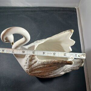 Great used clean condition, no crack no chip. Please scroll picture for more details. Vintage Porcelain Swan Planter Figurine Gold & White Vase. Pet and smoke free home.
