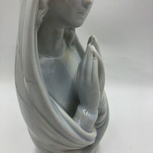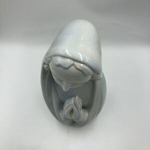 Vintage MCM Praying Virgin Mary Madonna Figurine Blue White Religious Tabletop Shelf Décor Collectible. Figurine is vintage pre-owned MCM after researching. Please see all photos for visible condition. No original box. There are no cracks but under the chin is what appears to be scuffs - no lacquer - not sure if from when made or after the fact but doesn't affect the integrity of the piece - I only really noticed it under the LED lights. Overall, is in great condition other than that part. Says DAZ on bottom. Approximately 10 inches tall x 4.25 inches x 3.75 inches. Very nice piece for a shelf or altar. Brand unknown.