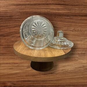 Vintage MCM Pressed Lead Crystal Trinket Candy Jar 4.5” Starburst Pattern