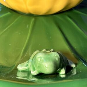 Vintage MCM Rare Portuguese Majolica Frog Platter and Lotus Flower Ceramic Bowl