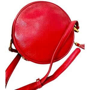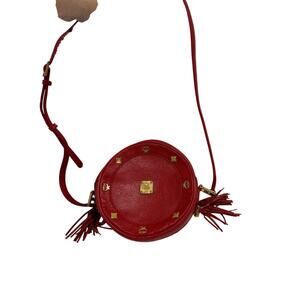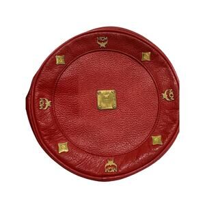 Vintage MCM Red Tambourine Round Leather Crossbody Bag