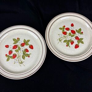 Vintage MCM Regency Susanne Stoneware 2 Dinner Plates 10.5 in Strawberries
