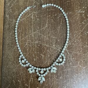 Vintage MCM Retro clear rhinestone faux diamond formal necklace hook closure