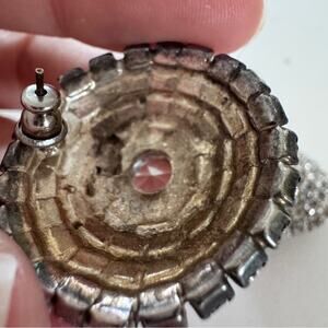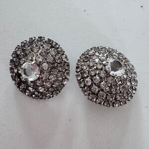 Vintage MCM Rhinestone Large Round Earrings Womens Pierced Formal