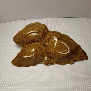 Vintage MCM Santa Anita Ware R-27 Three Leaf Glossy Glazed Art Pottery Dish