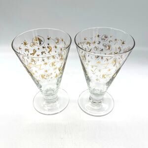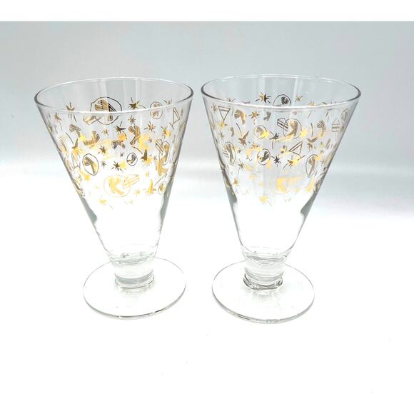 Vintage MCM Set of 2 Kahlua Celebration Atomic Cocktail Stemmed Glasses 5.25"