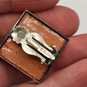 Vintage MCM Signed Matisse Red Enamel Modernist Clip On Earrings.