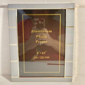 Vintage MCM Silver Gold Aluminum Metal Photo Picture Frame 8 X 10" Minimalist