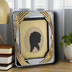 Vintage MCM Silver Gold Picture Frame 5x7 Hollywood Regency 1970s + Silhouette