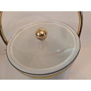 This ice bucket offers a blend of vintage charm with its sleek silver finish and gold accents. A functional and decorative bar accessory.