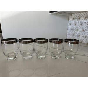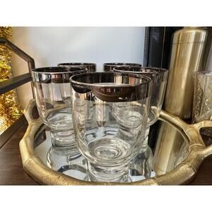 Vintage MCM Silver Rimmed Lowball Glasses - Set of Five