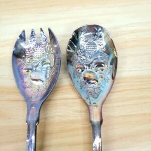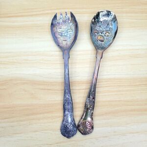 Vintage MCM Silver Plated Salad Fork and Spoon Servers